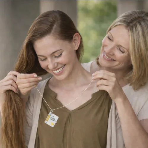 Lleva siempre contigo el vínculo que lo une a tu corazón. Un collar que abraza tu amor por tu hij@ cada día.
